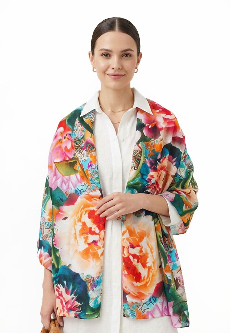 Представленная коллекция жатых палантинов объединила в себе сотни изделий, украшенных актуальными яркими жизнерадостными цветочными мотивами и милыми беззаботными бабочками. Сочетание материалов, использованных для пошива этих палантинов – 20% хлопка и 80% полиэстера – наделяет их такими свойствами, как устойчивость к световому воздействию, хорошая износостойкость и стойкость по отношению к стиральным порошкам.